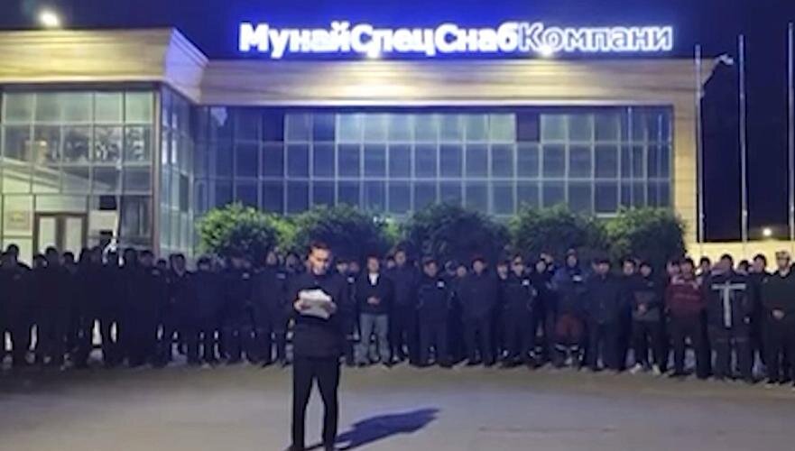 «Мы, работники ТОО «МунайСпецСнаб Компани», выражаем обеспокоенность нарушеним наших трудовых прав и социальной несправедливостью. В связи с неисполнением наших требований с ночи 28 октября 2025 года нами приостановлена работа. Наши требования – о справедливости и о том, чтобы права трудового человека были защищены, а также, чтобы рабочие были услышаны. Пусть требования будут выполнены», - зачитал видообращение к властям и общественности мужчина на фоне «МунайСпецСнаб Компани» перед большой группой людей, которые хором поддержали его требования.